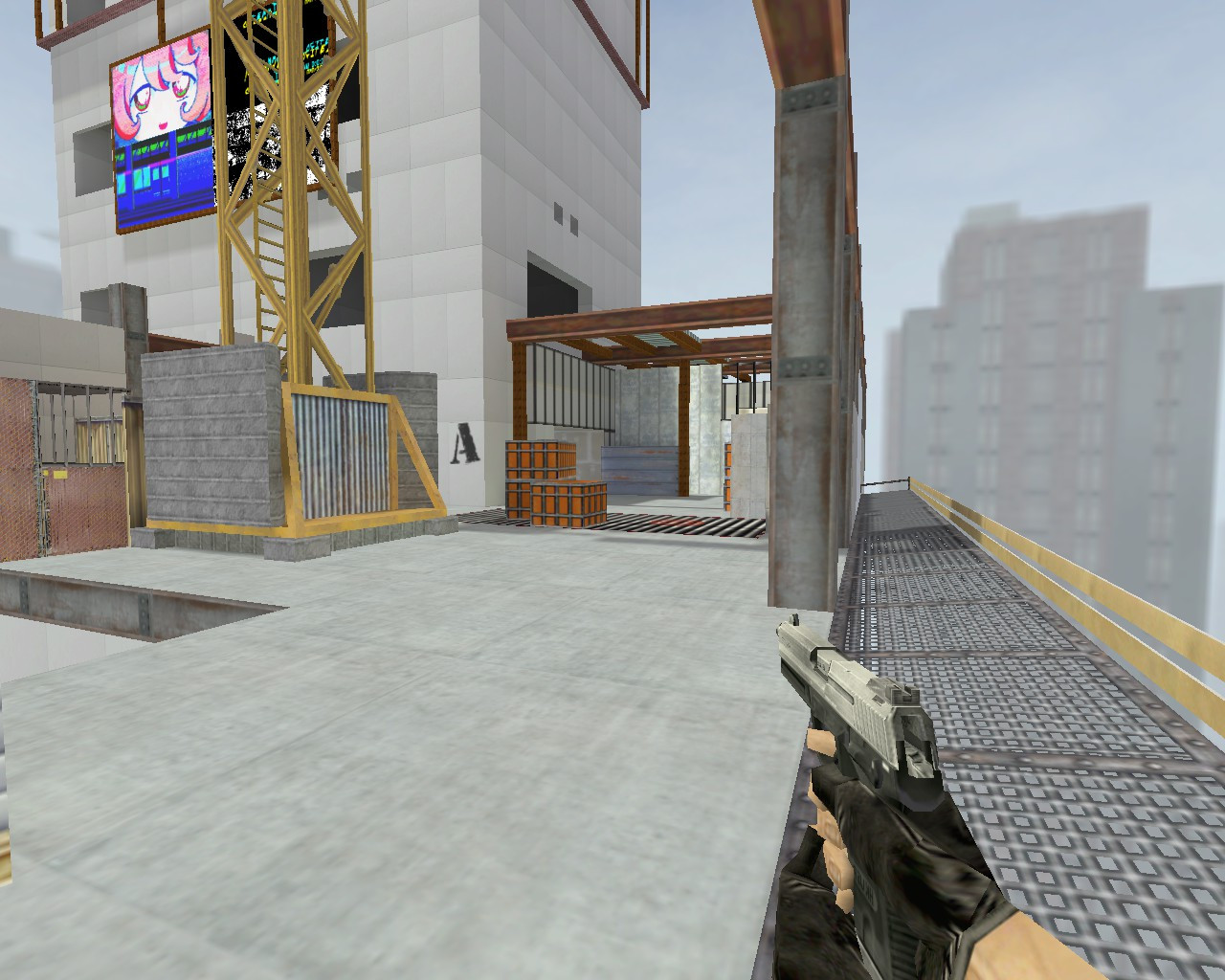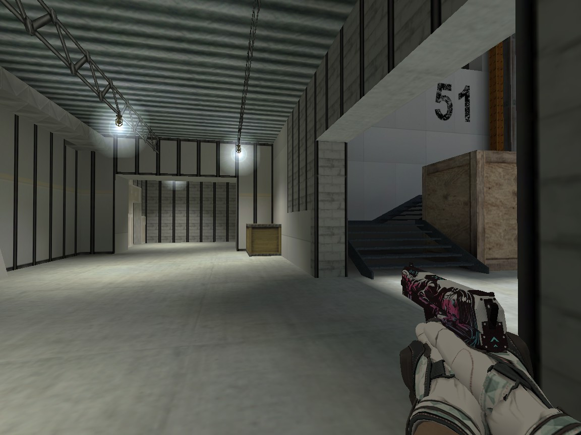 部分牆壁圖案也來自 CSGO 本身的 Vertigo 紋理(轉換了.vtf檔案)。