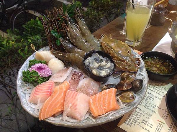 御品海鮮(有大蝦、北海道干貝、螃蟹、鯛魚、鮭魚、透抽、鮮蚵、蛤犡)