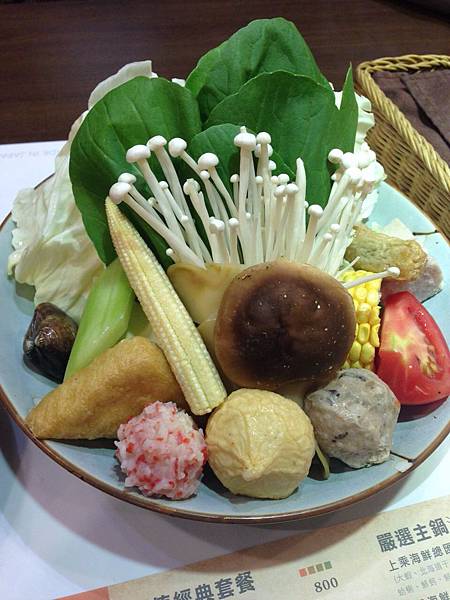 、高麗菜 水晶餃、蛤犡、甜不辣、絲瓜、玉米、香菇、金針菇、蟹肉丸、香菇貢丸、番茄、火鍋豆腐、黑木耳、三角豆腐...超多的配料,而且超級新鮮唷