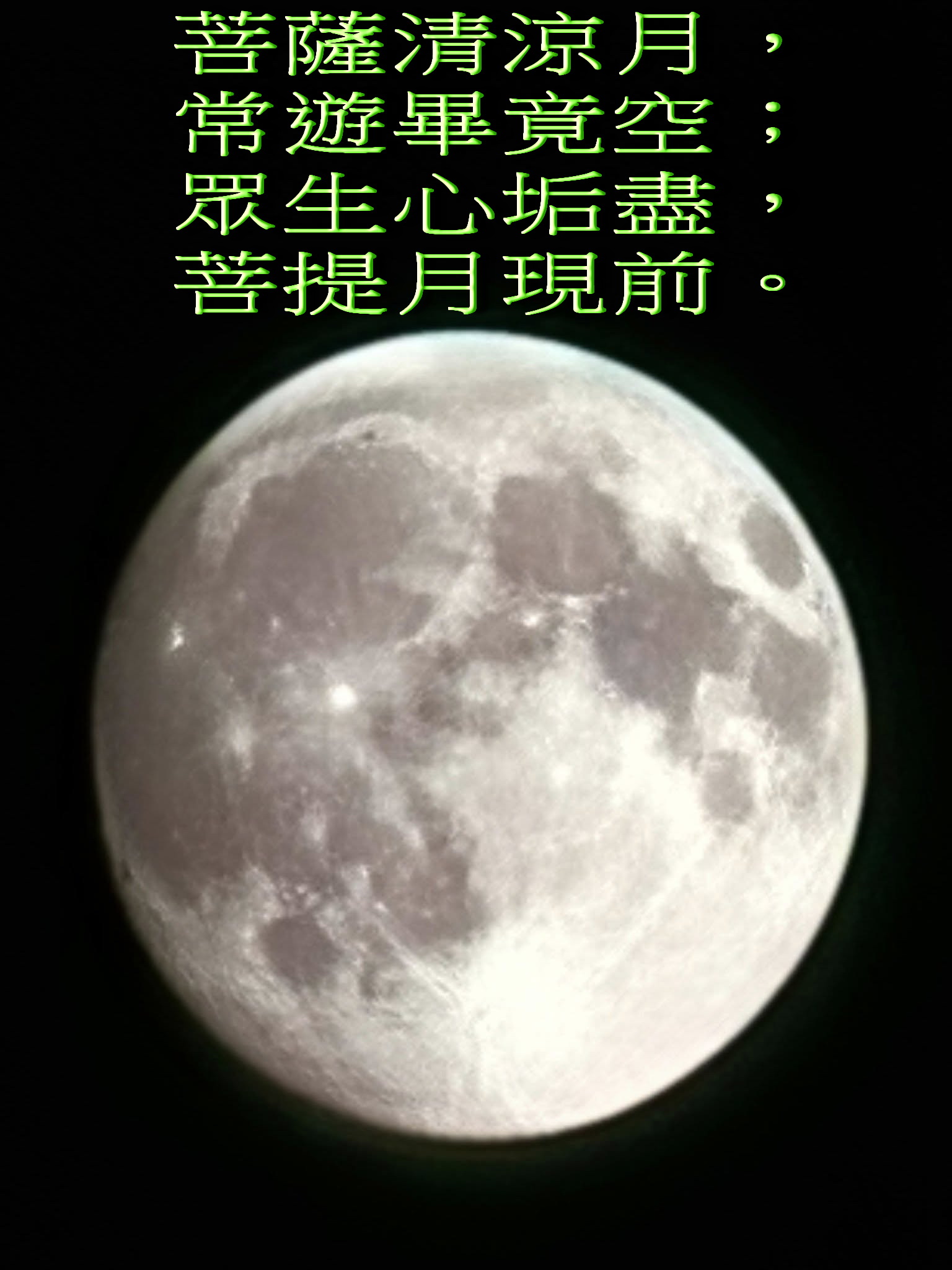 (菩薩清涼月,常遊畢竟空;眾生心垢盡,菩提月現前。)