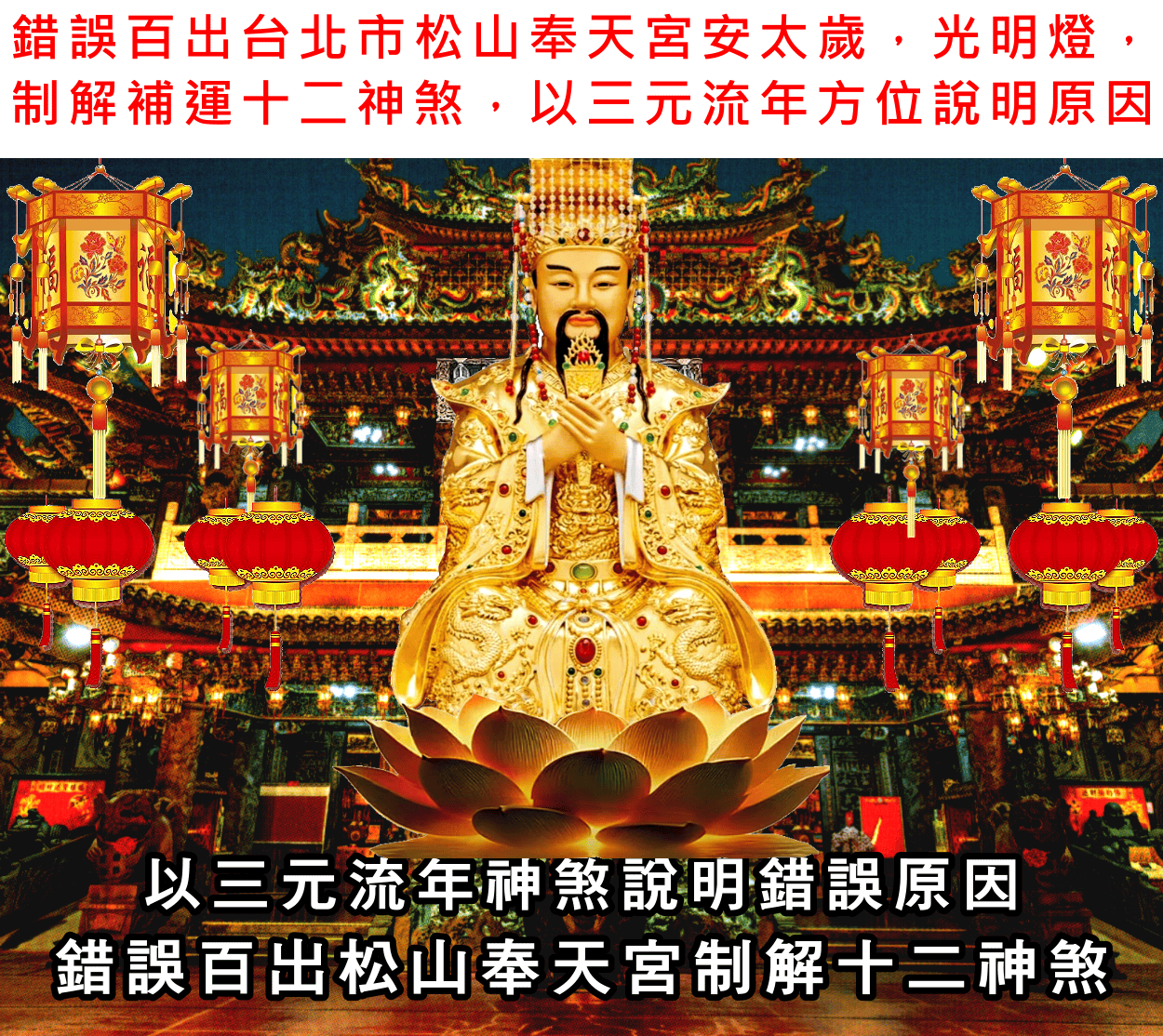 [分享] 嚴重錯誤丙午年台北市松山奉天宮安斗燈,光明燈,太歲燈,制解補運十二神煞,讓人瞠目結舌,以三元流年方位神煞說明錯誤原因精解