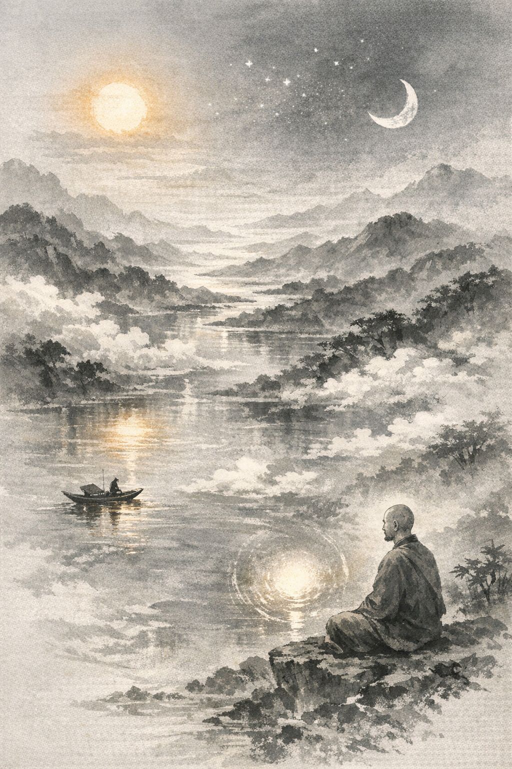 「入世卻清淨」的操守,以及日月「運行卻無住」的心境。