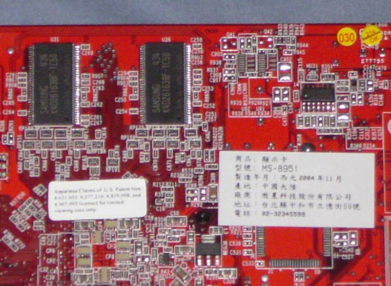 在卡的部分只有記憶體讓我滿意~ SAMSUNG K4D551638F-TC50記憶體 卡是老共做的~