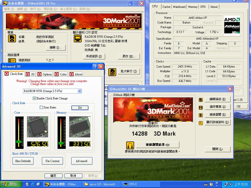 微星電腦所出的RADEON 9550顯示卡的可超幅度真是相當強,超高C/P值,這2,200元