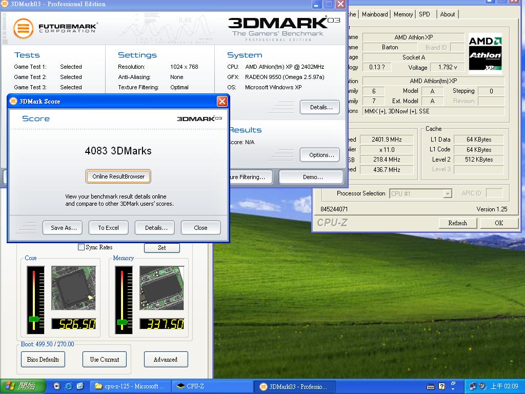3dMark03 可以說沒有變到什麼~只有4083分,請問可以算4100嗎........